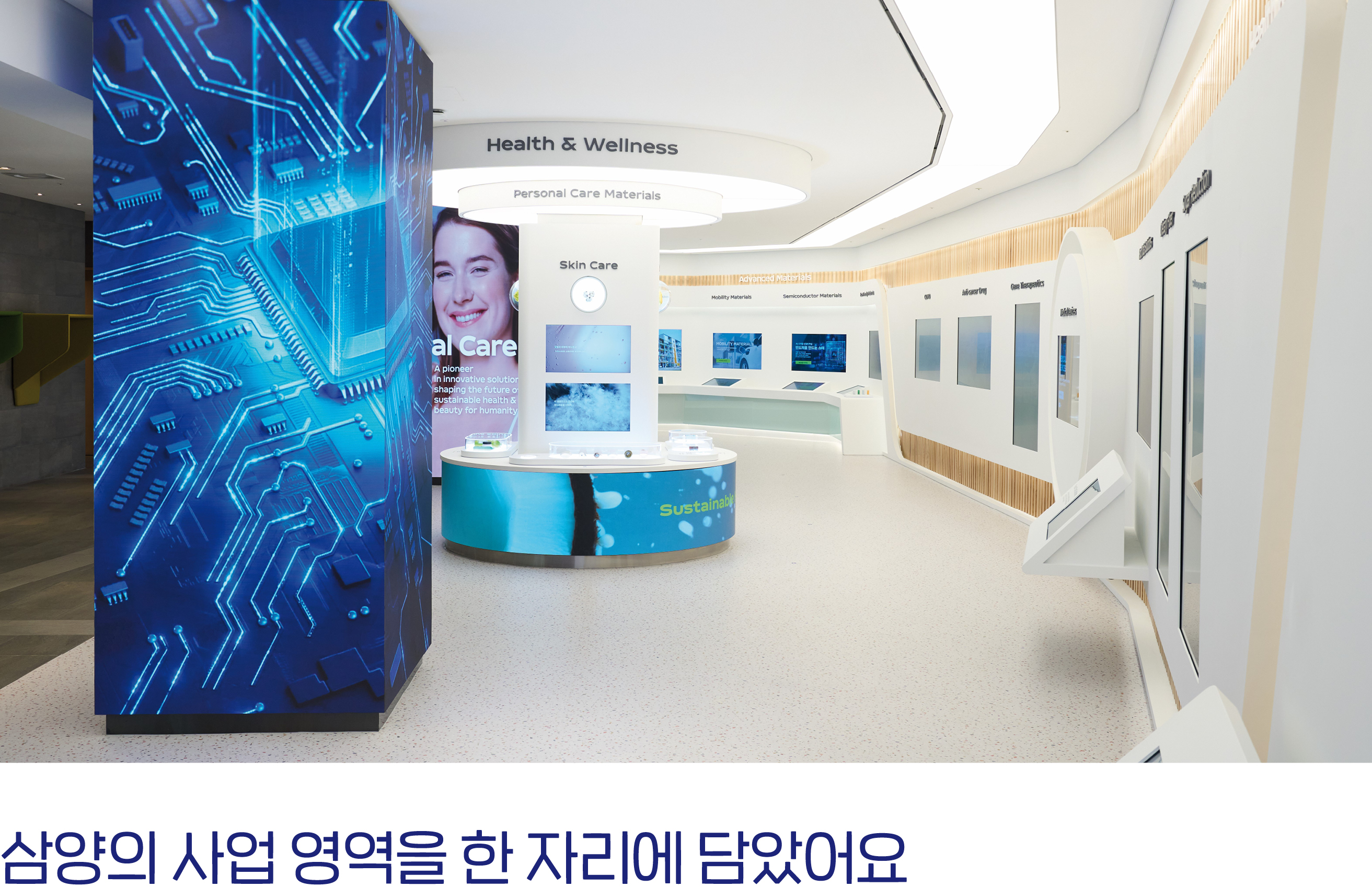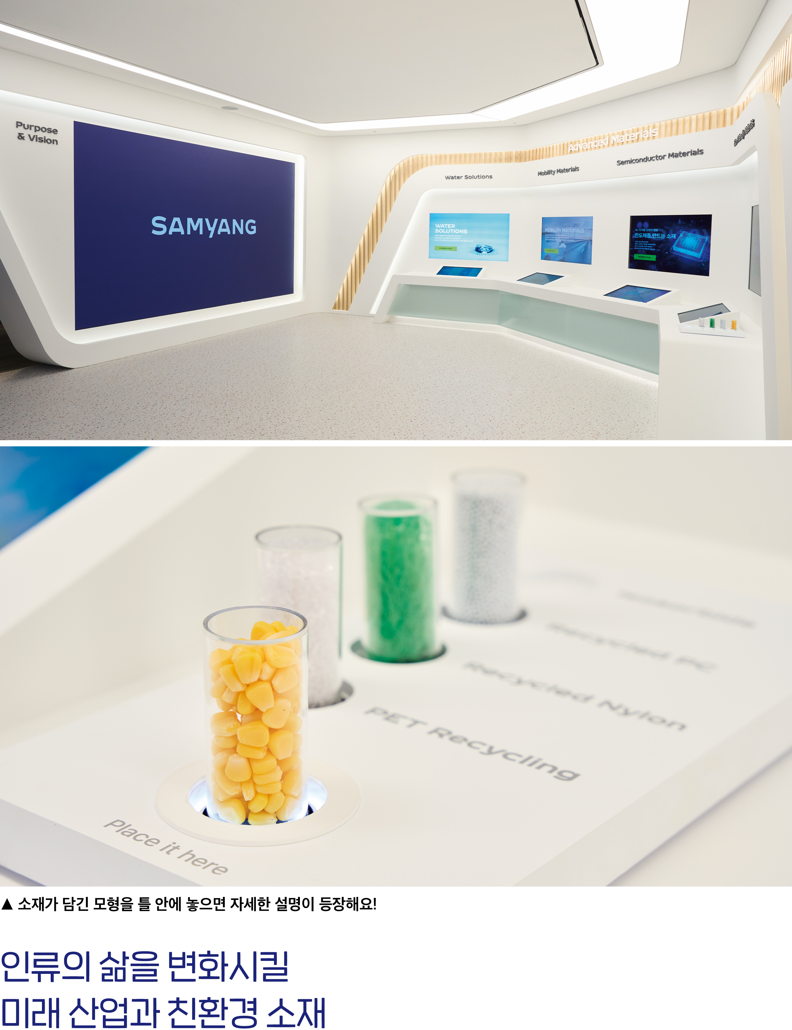 삼양의 소재가 어떻게 쓰이고 있는지 직접 확인하고 느낄 수 있는 공간이에요. |