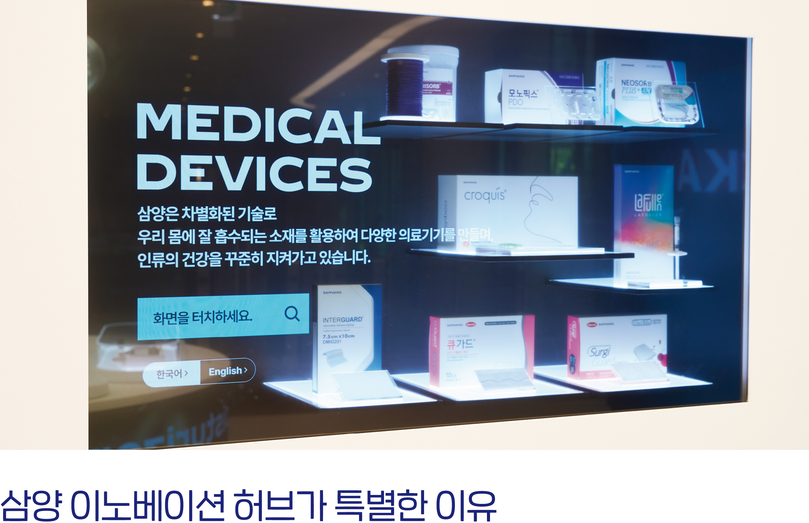 이곳에는 의약바이오 부문에서 생산하는 의료용 봉합사, 필러 등