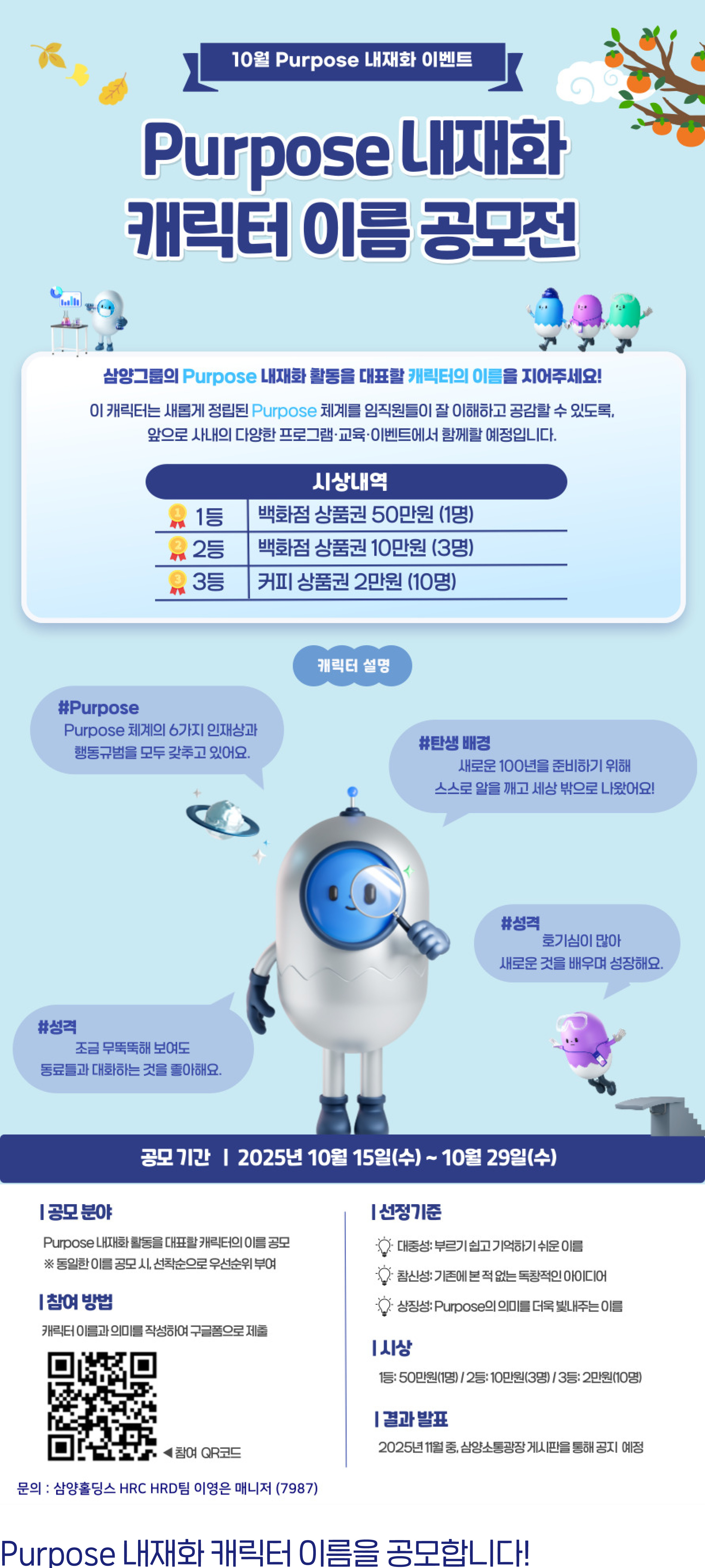 삼양그룹의 Purpose 내재화 활동을 대표할 캐릭터의 이름을 지어주세요~