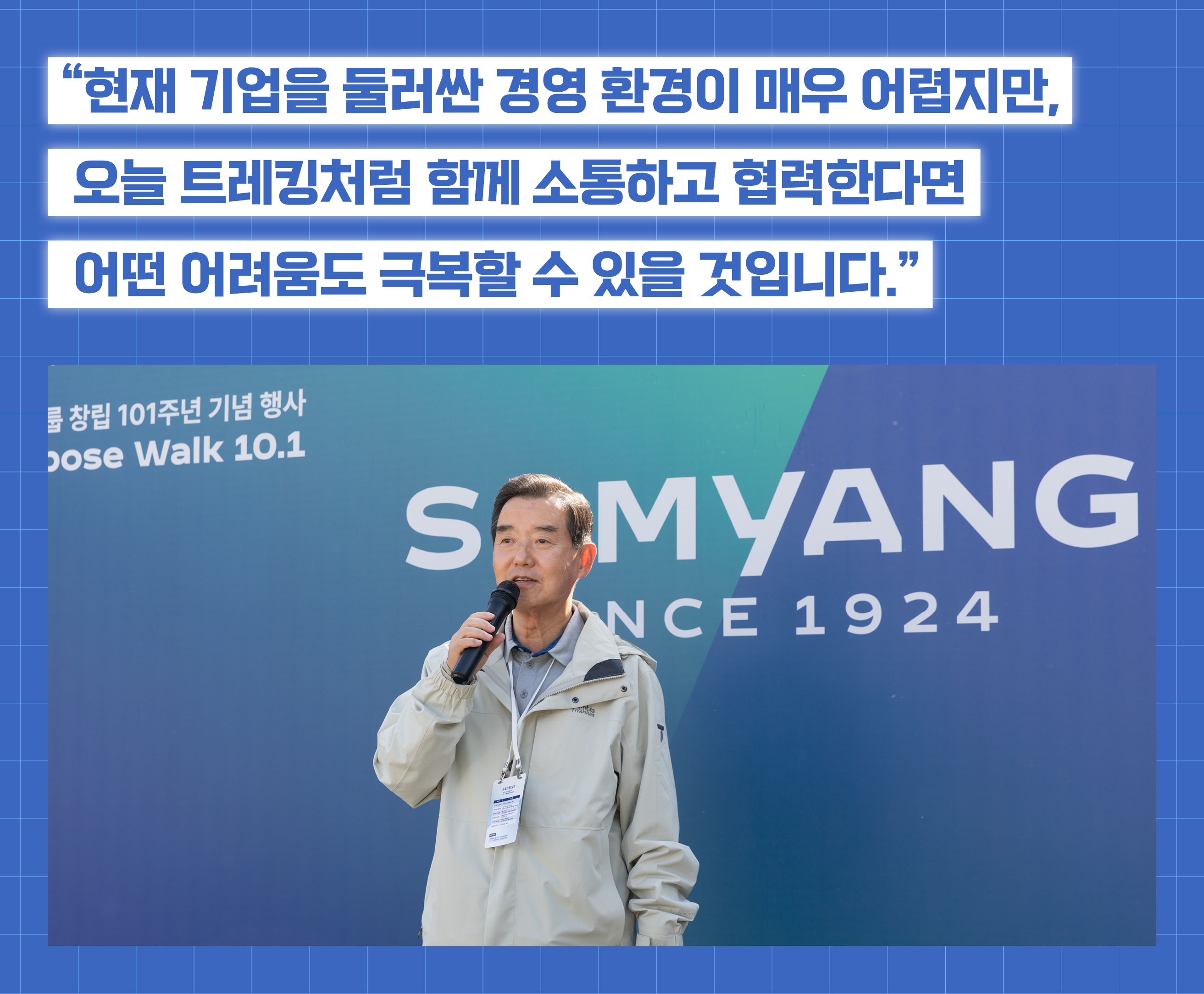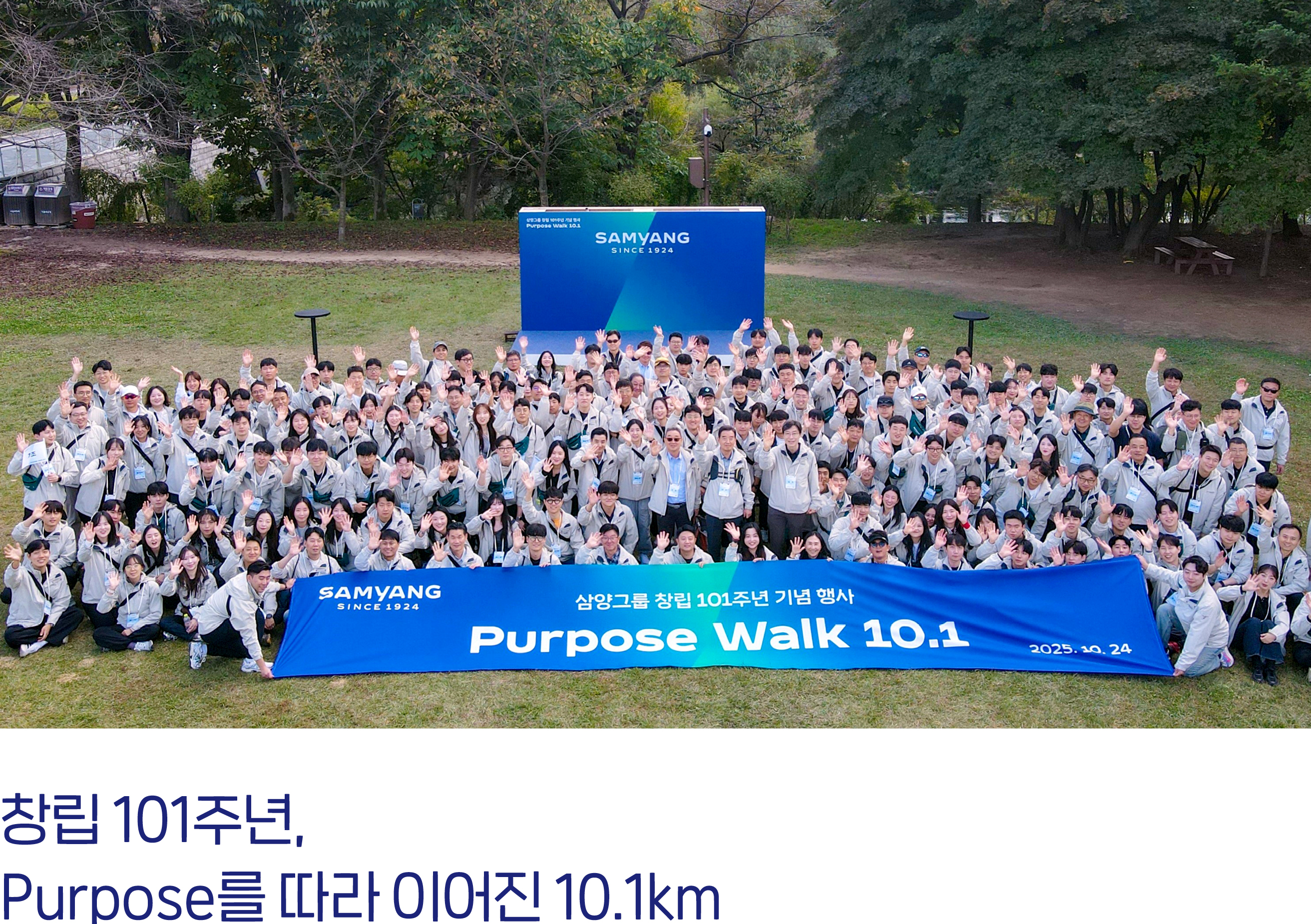 이번 '퍼포즈 워크 10.1'은 삼양의 창립 101주년을 기념하는 자리이자,삼양이 지켜온 가치와 앞으로 나아갈 방향을 되새기며 소통하는 시간이었어요.