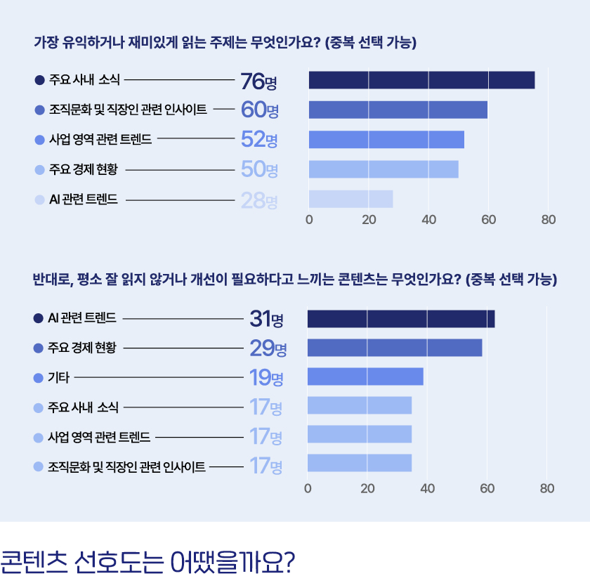 반대로 평소 잘 읽지 않거나 개선이 필요하다고 여기는 콘텐츠로는